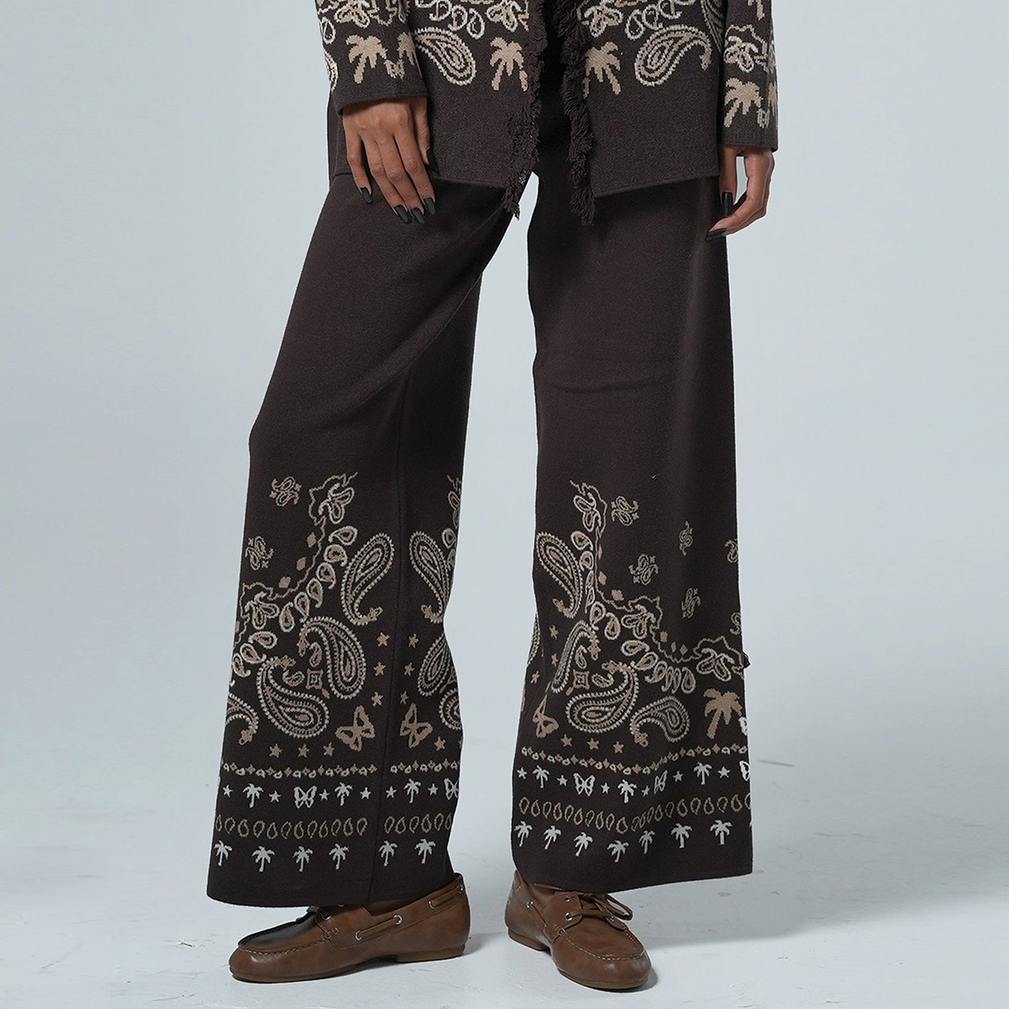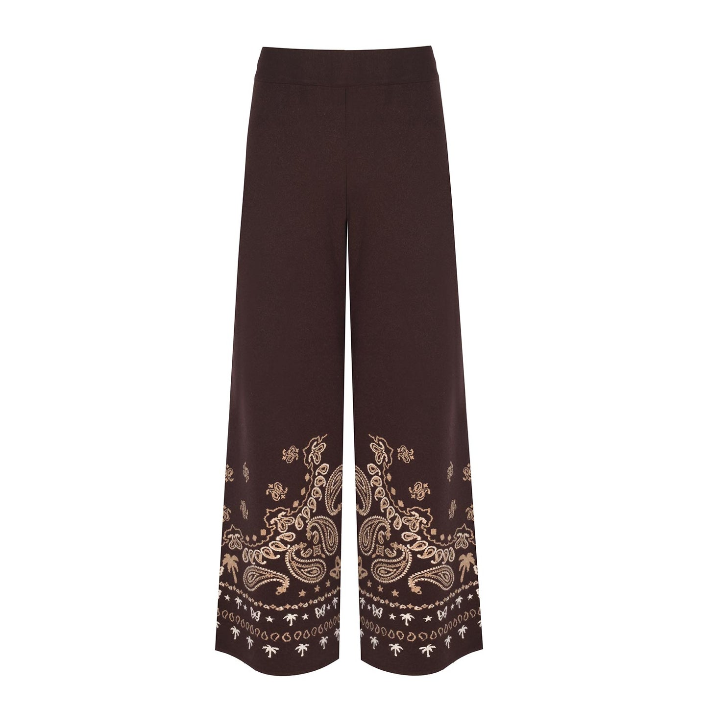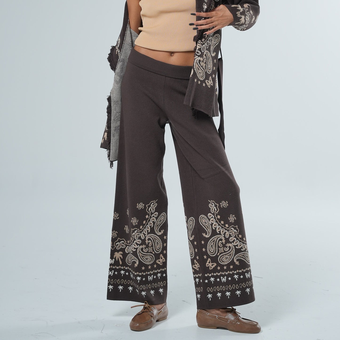 Caprica Jakarlı Geniş Paça Pantolon – Kahverengi & Bej