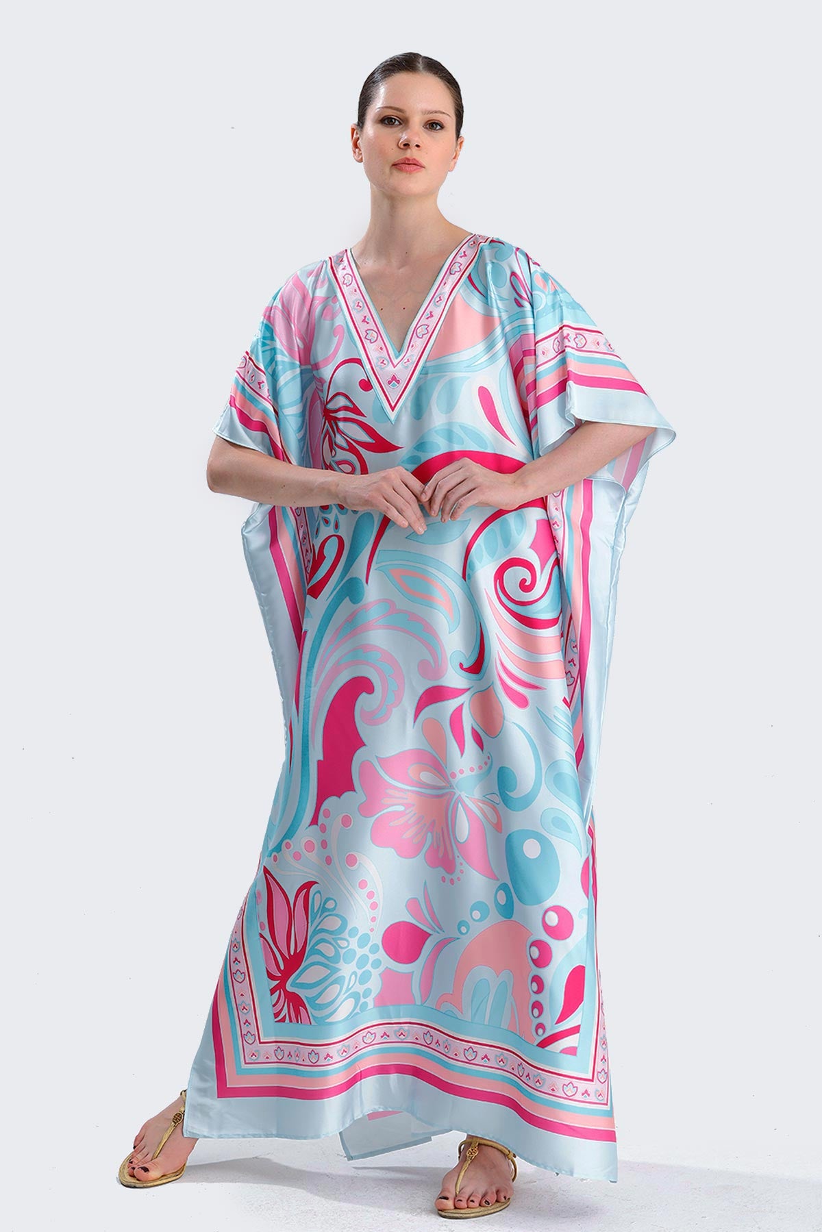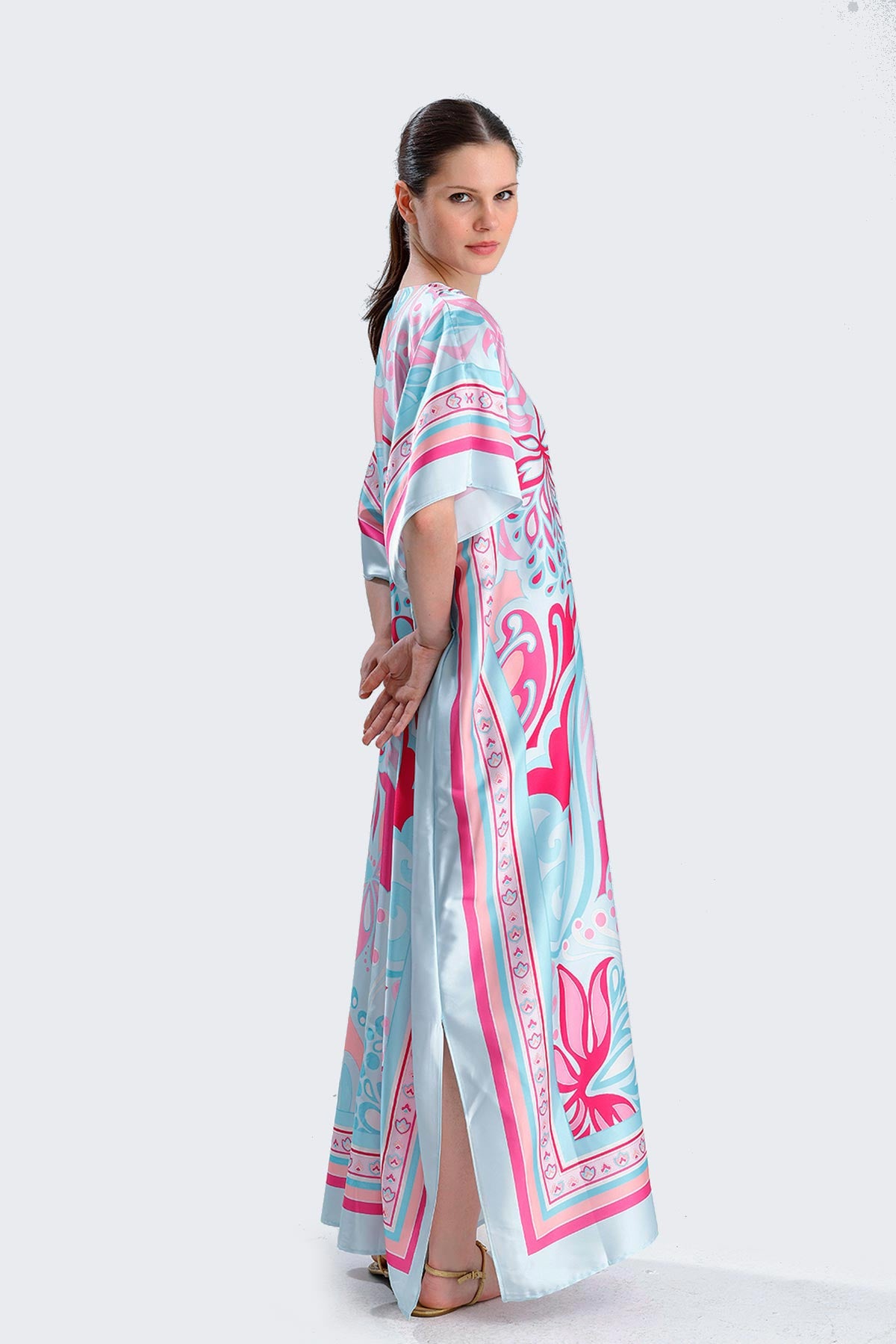 Eklemek Linda Gök Pembesi Saten Kaftan sepete