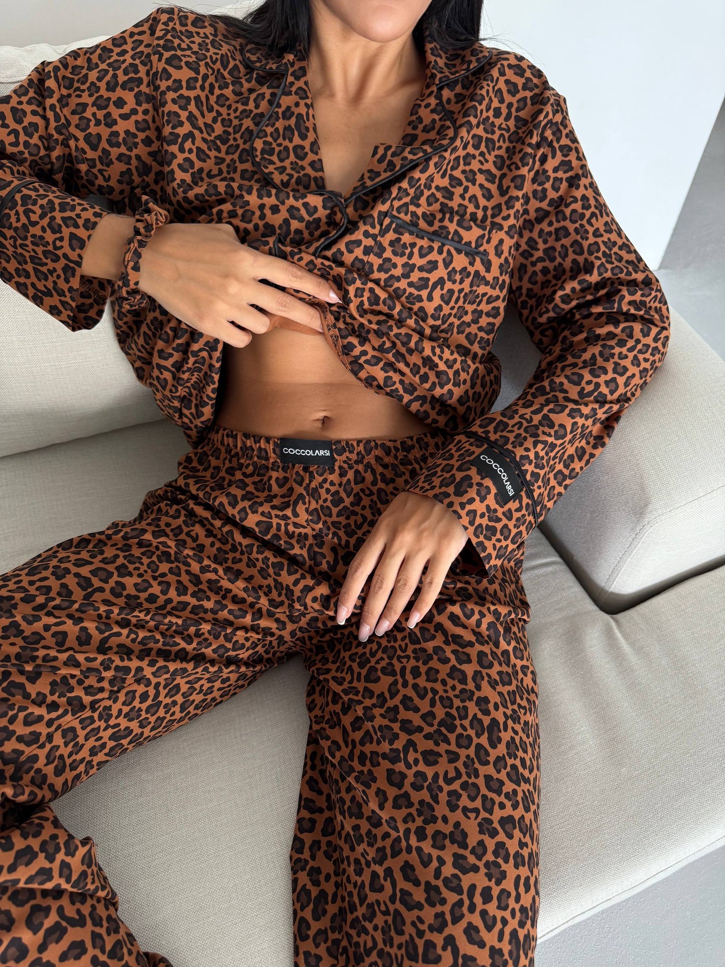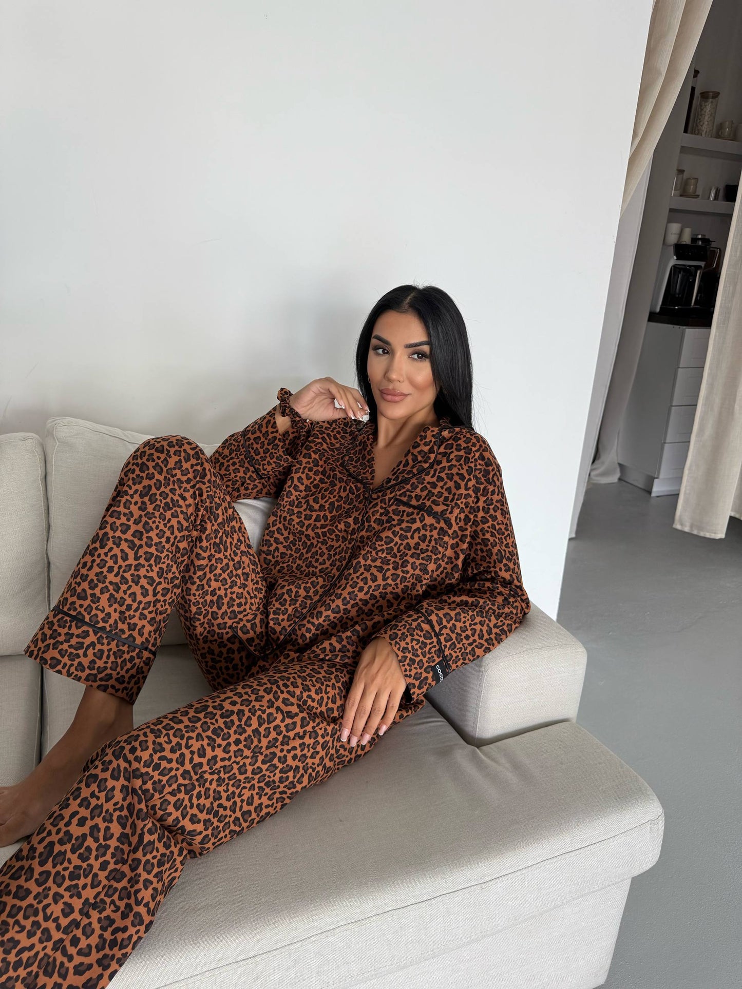 Bring a touch of wild elegance to your nights with this brown leopard satin pajama set. ✨