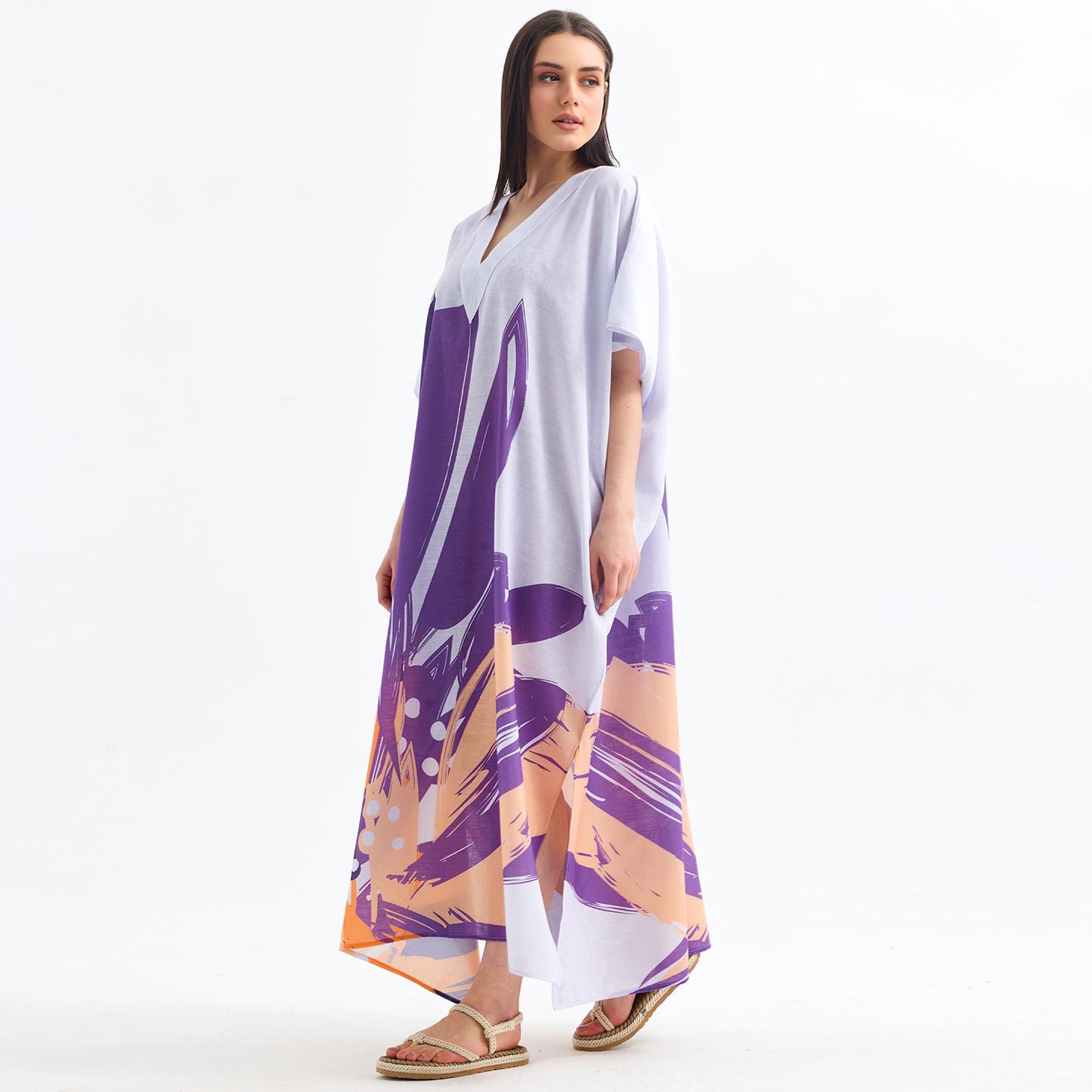 Güneşli günlerde veya rahat akşamlarda giyebileceğiniz bu kaftan, her ortama zahmetsiz bir şıklık katıyor.