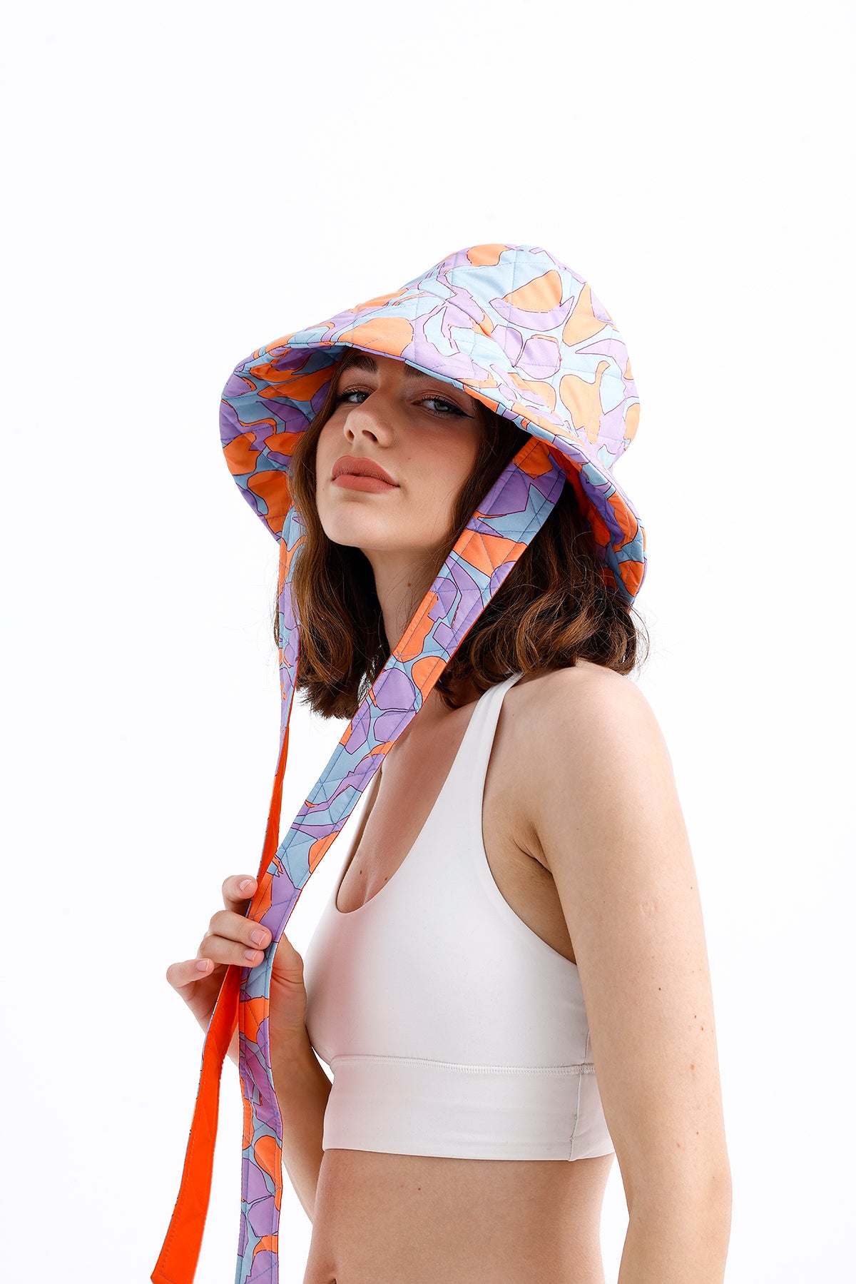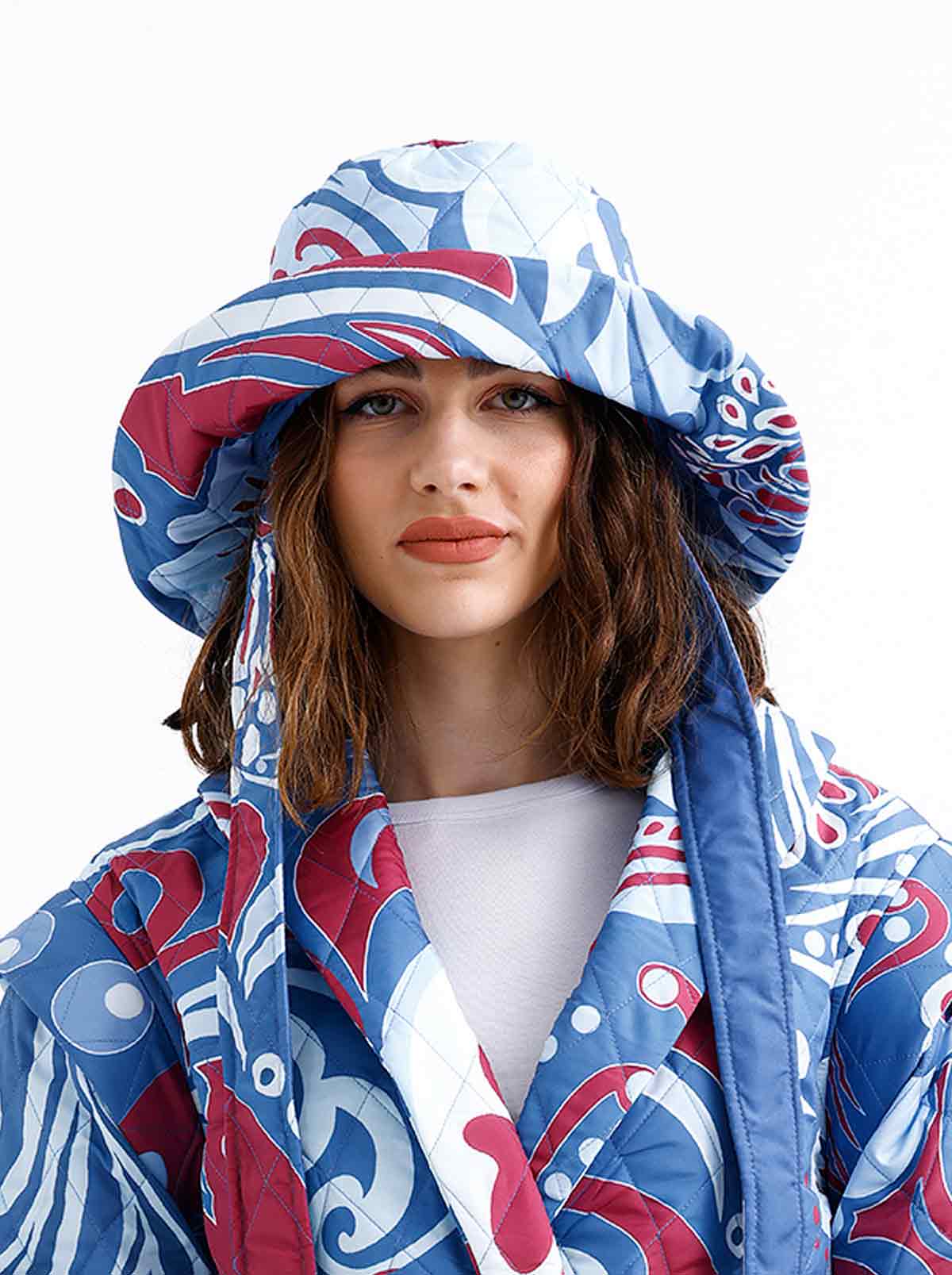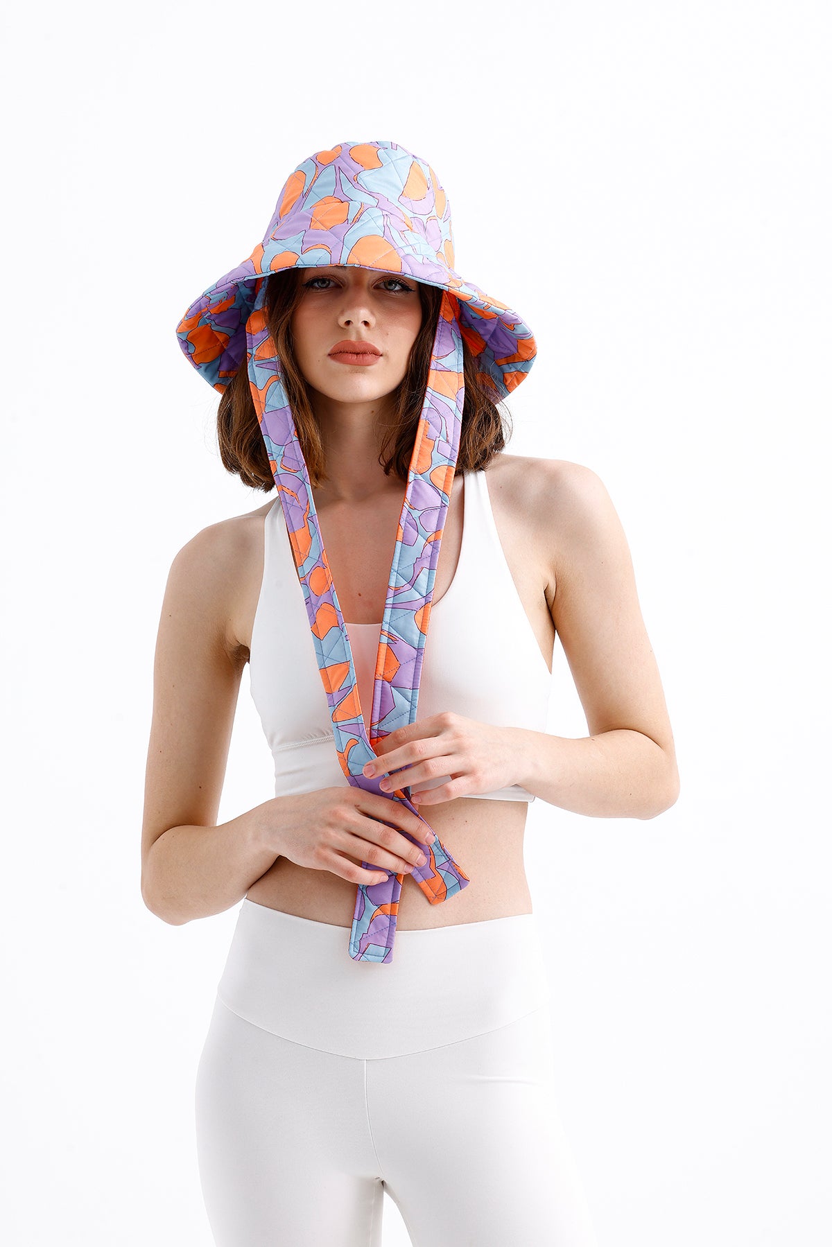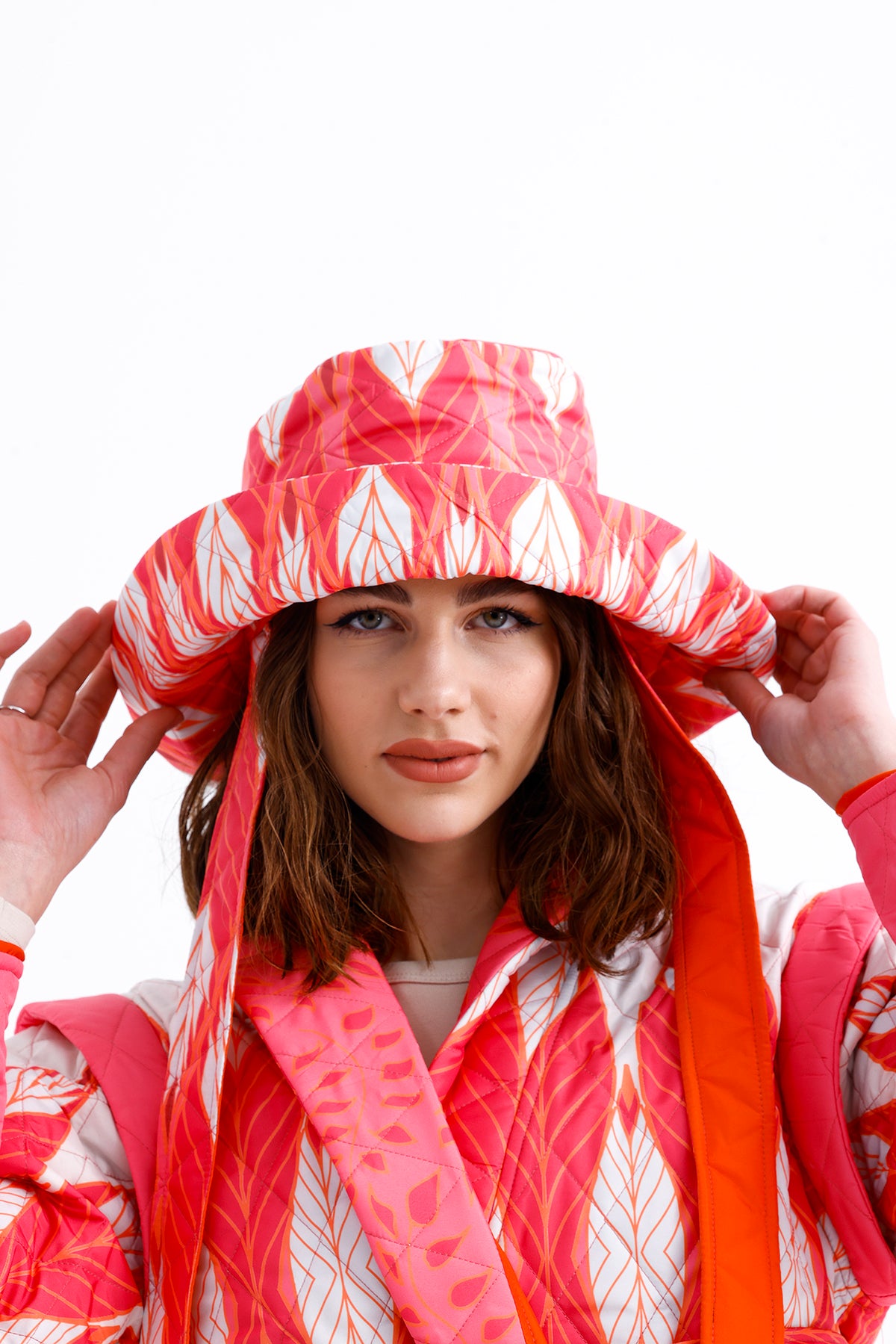 Eklemek Yaprak Baskılı Kapitone Şapka sepete