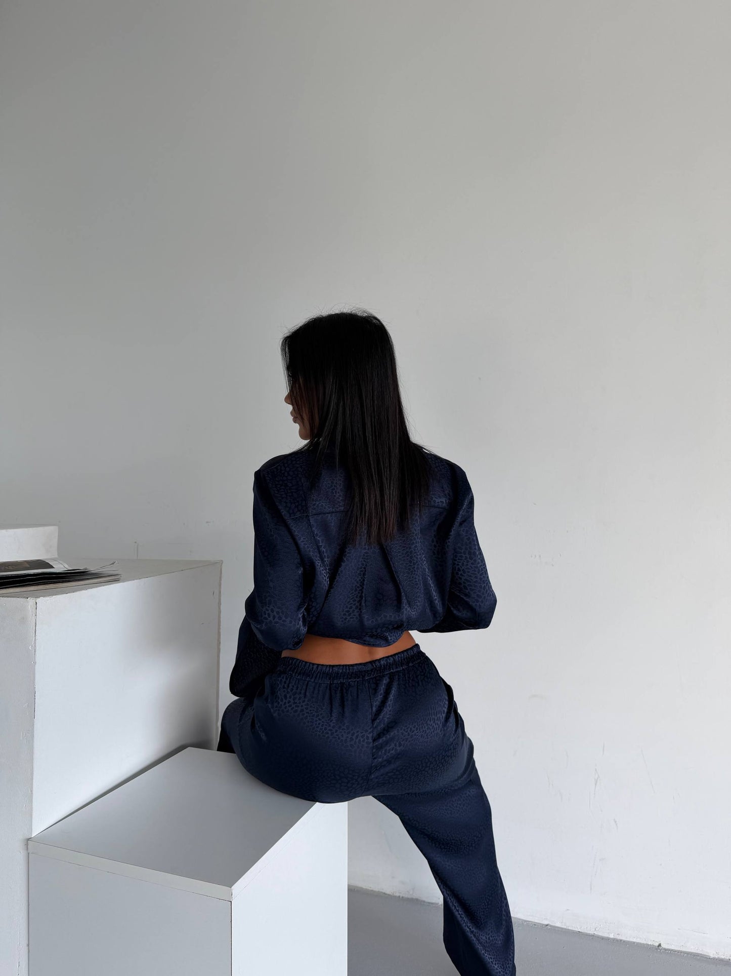 Midnight Jacquard, konforlu olduğu kadar “derli toplu” görünmek isteyenler için tasarlandı. Jakarlı saten kumaş, ipeksi bir his ve hafif parlak bir görünüm sunarken; yüzeyindeki ince dokulu desen premium bir duruş sağlar. Takım; gömlek yaka düğmeli üst ve lastikli bel geniş paça pantolondan oluşur. Evde, seyahatte ya da aksesuarlarla kombinleyerek dışarı stilinde kullanıma uygundur.